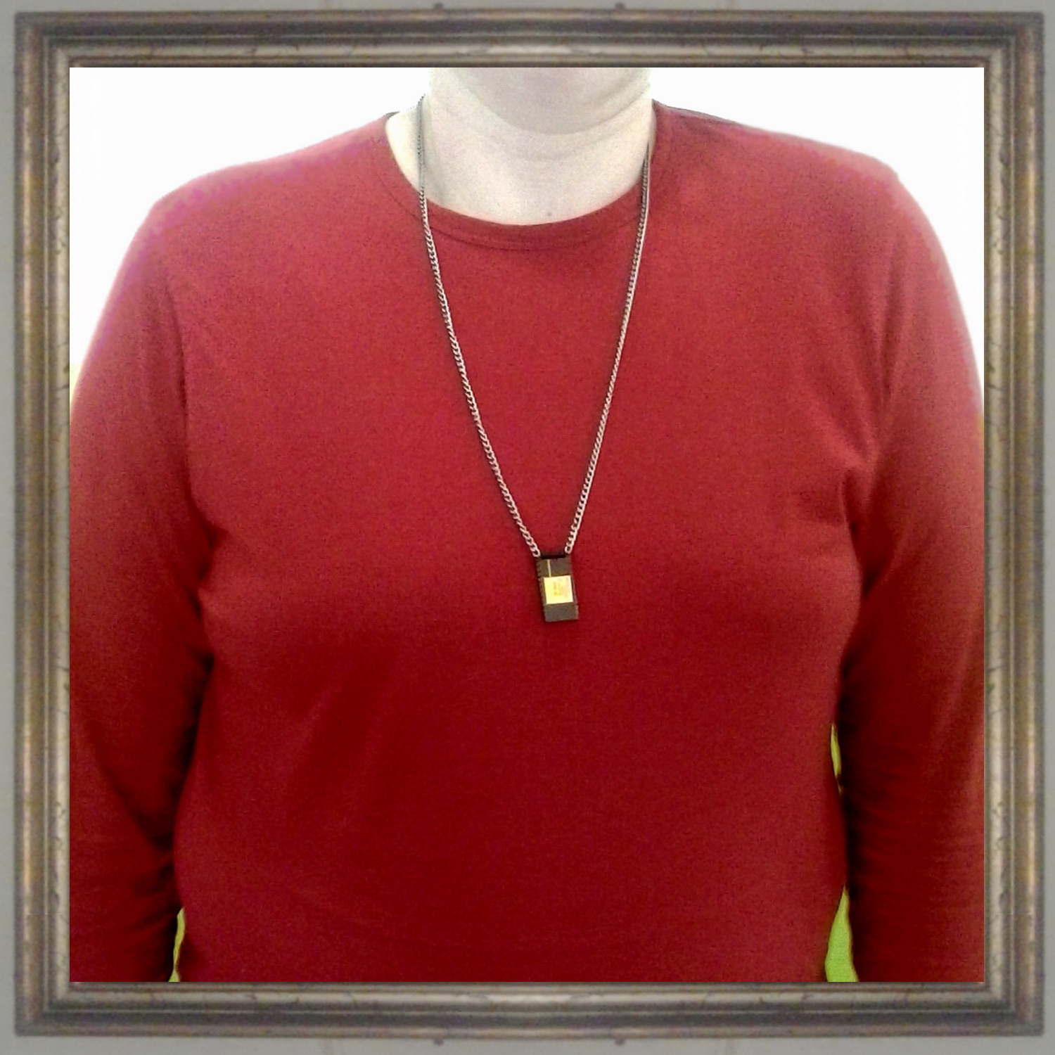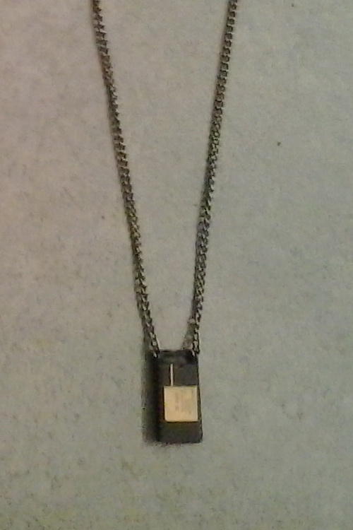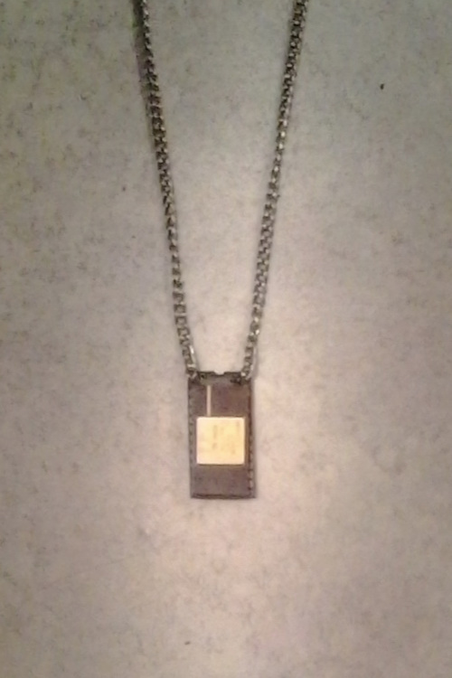 Hier stelle ich eine Golden "L" Variante meiner Halsketten-Anhänger Serie vor. Diese Variante besteht aus einem Chip mit einer Vergoldeten Metallplatte.